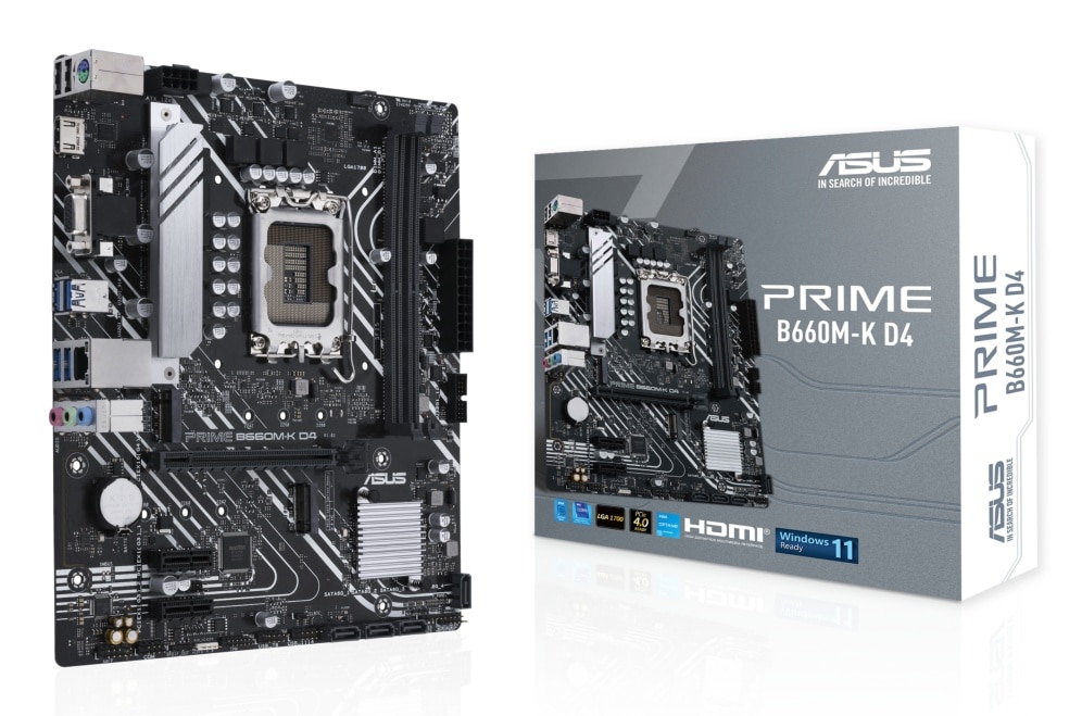 ASUS 1700 PRIME B660M-K D4 M-ATX. Fabricante de procesador: Intel, Socket de procesador: LGA 1700, Procesador compatible: Intel® Celeron®, Intel® Core? i3, Intel® Core? i5, Intel® Core? i7, Intel® Core? i9,…. tipos de memoria compatibles: DDR4-SDRAM, Memoria interna máxima: 128 GB, Tipo de ranuras de memoria: DIMM. Interfaces de disco de almacenamiento soportados: M.2, SATA III, Tipos de unidades de almacenamiento admitidas: HDD & SSD, Niveles RAID: 0, 1, 5, 10. Tipo de interfaz ethernet: Gigabit Ethernet. Componente para: PC, Factor de forma: micro ATX, Familia del chipset: Intel