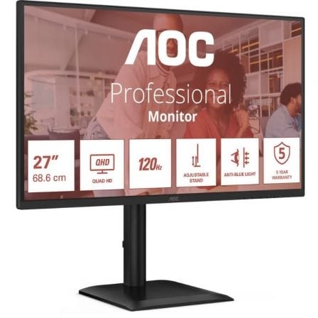 - Pantalla: 27′, IPS, WQHD 2560×1440, antirreflejos, 16:9