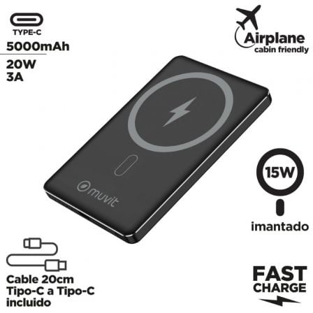 - Salida Tipo-C: 5V ⑧ 3A;9V ⑧ 2,22A; 12V ⑧ 1,67A 20W Máx.